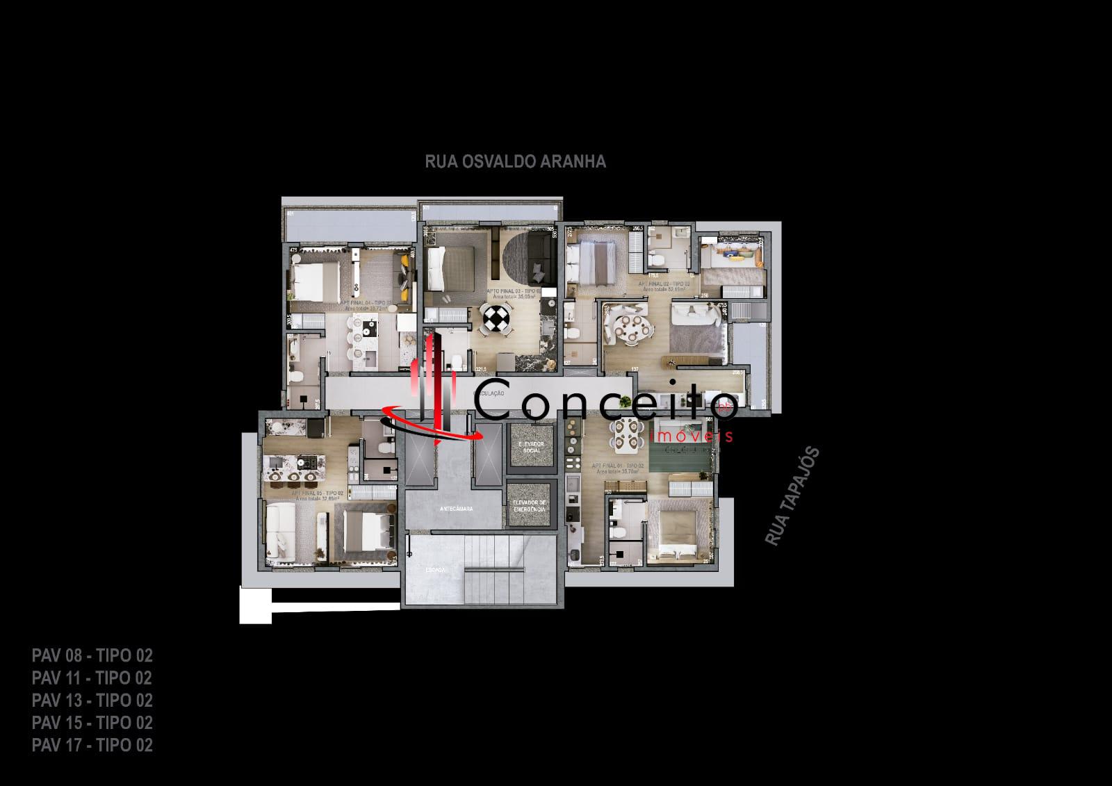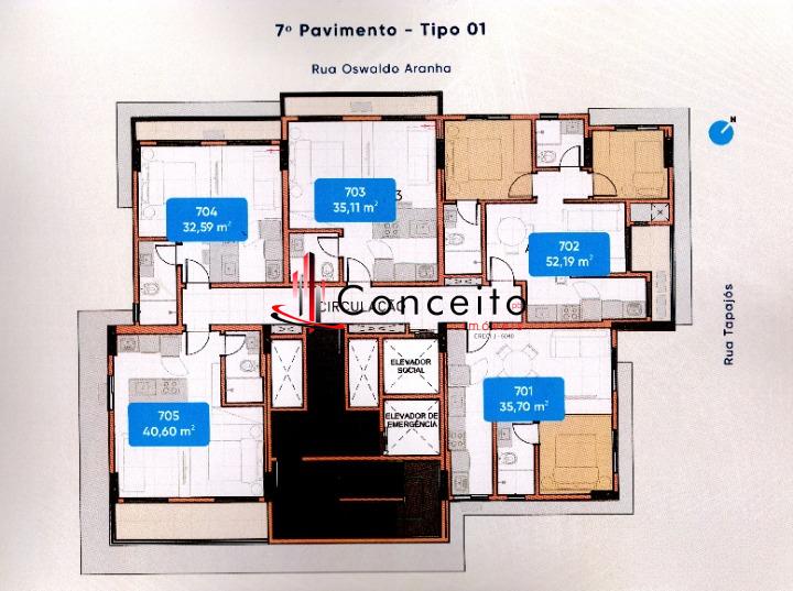 metragens de privativa de 32,59 m², 35,11 m² 40,60 m²