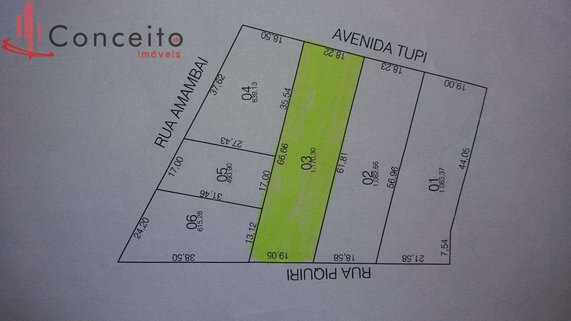 Conceito pb Imóveis vende: terreno com 1170,30 m², localizado no Bairro Pinheirinho, tendo frente para a Avenida Tupi e fundos para a Rua Piquiri, com possibilidade de construção para 6 pavimentos.